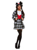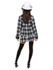Embrace the cult following of the 90's classic movie Clueless in our Licensed Clueless Dionne Costume. Transform into Cher's ever present best friend Dionne with our fabulous costume which includes a black & white plaid jacket, white short sleeve top with attached red vest, black & white plaid pleated mini skirt with 2 large safety pins for decoration. Completing the look of the costume is a white hat with black band with a pink flower and a pair of knee high black socks.