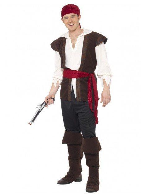 Hit the high seas in this classic buccaneer pirate costume for adults. Costume includes headscarf, shirt, waistcoat, trousers, belt and bootcovers. Pistol and all other accessories sold separately.