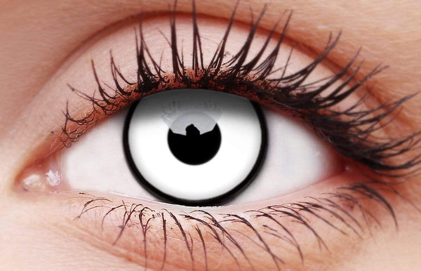 1 Year White Zombie multi-use costume contact lenses to complement your outfit and swift home delivery or Click & Collect In Brisbane Store being the centre of any Halloween party is just a blink away!