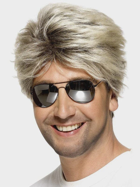 80s street style wig with blonde highlights for men. Dress like George Michael from Wham! for your next 80's or musician themed party!