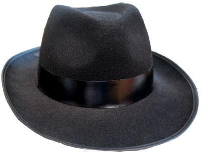 Black costume fedora hat for Gangsters or anyone from the 20s, 30s, and 40s.