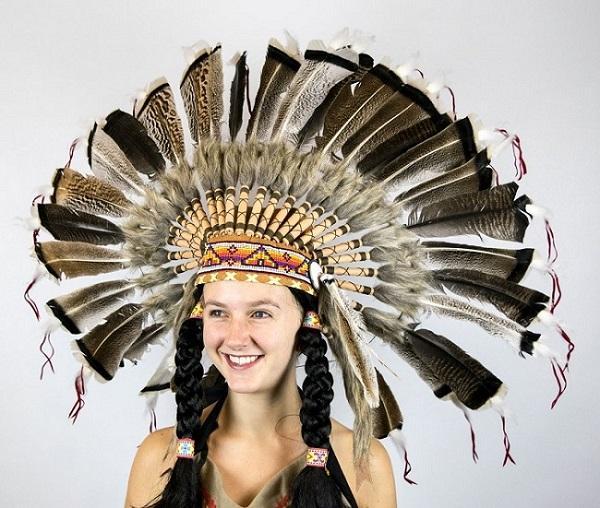Native American Feather Headdress With Turkey Feathers War Bonnet