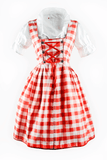 Nothing says country charm like classic red and white gingham. This endearing Dirndl is a three piece costume which includes the red gingham dress, complemented by the sharp white peasant girl blouse and completed with the matching red apron. The bodice features rustic look edelweiss eyelets for lacing the ribbon at the front. Dress zips up the back. The length is just short enough to be fun and playful without being too revealing, the classic Oktoberfest look.