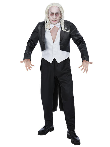 Jacket, waistcoat, bow tie. Pants not included. Wig sold separately.