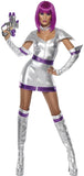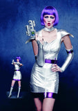 You'll be the star of the show in this sexy sci-fi space cadet fever costume at your next party! Gorgeous galactic dress with belt, arm cuffs and belt cuffs.