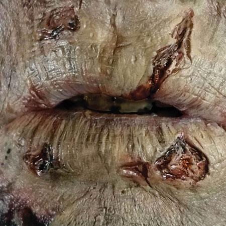 Hollywood film quality zombie lips horror makeup is easy to apply only using water, and is latex free. no need for glue.